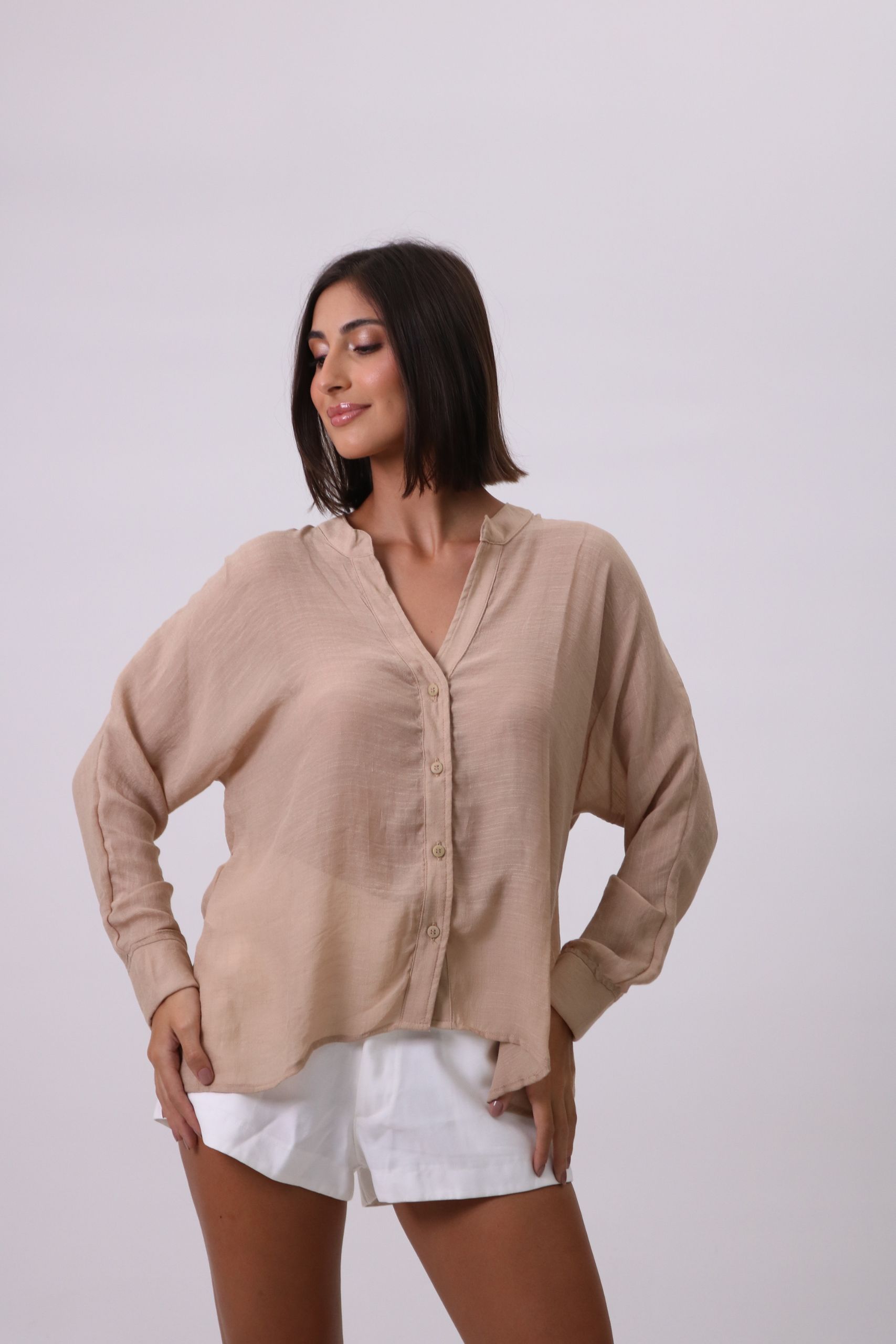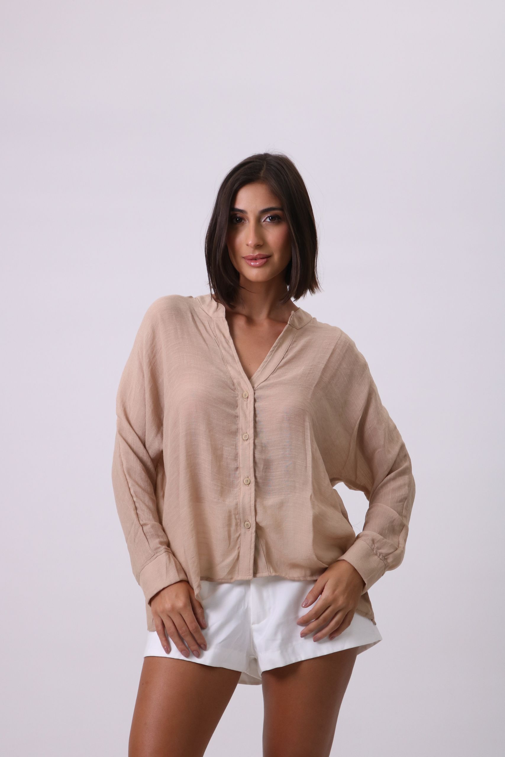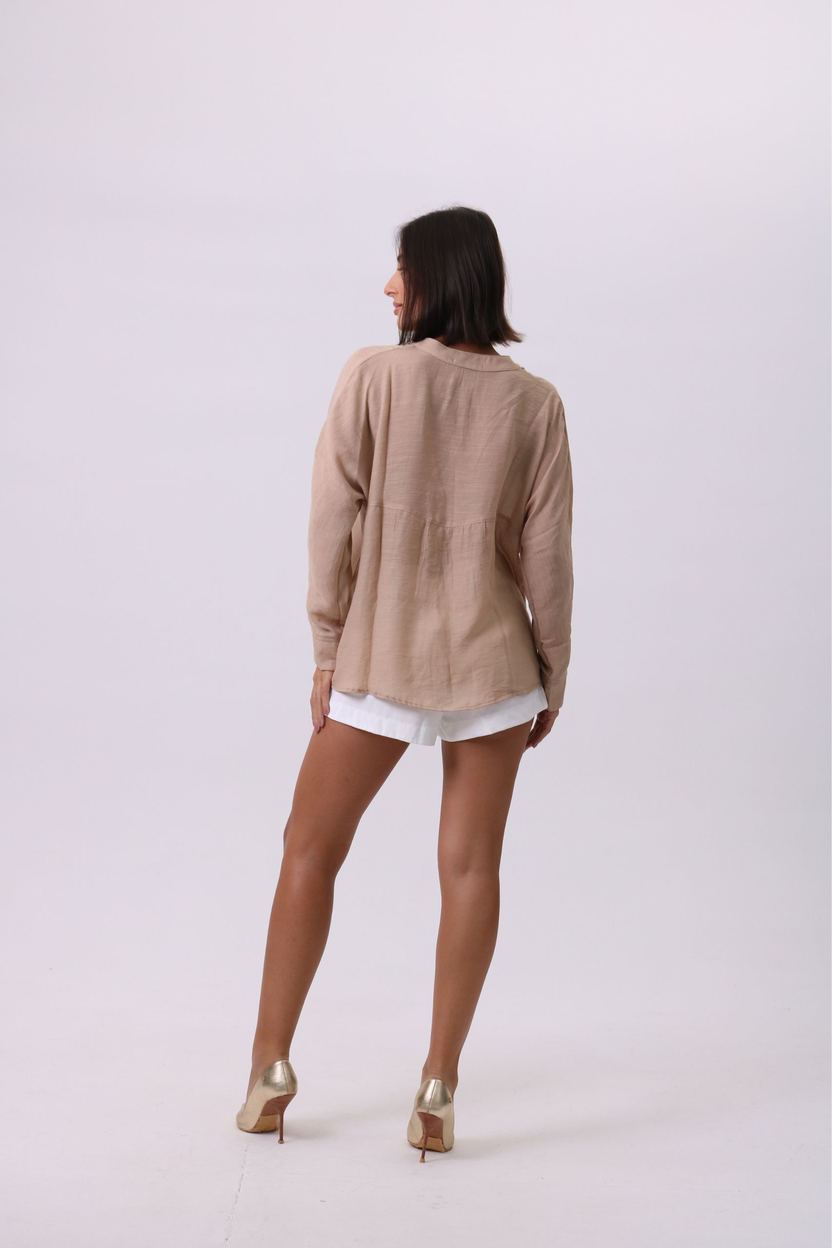 A Bata Patrícia é leve e atemporal, perfeita para composições que valorizam conforto com um toque sofisticado. Confeccionada em uma mistura de viscose com linho, a peça possui textura suave e aspecto levemente rústico, que traz autenticidade ao visual. Sua modelagem solta proporciona fluidez ao movimento, enquanto o caimento delicado garante frescor e elegância em qualquer ocasião.