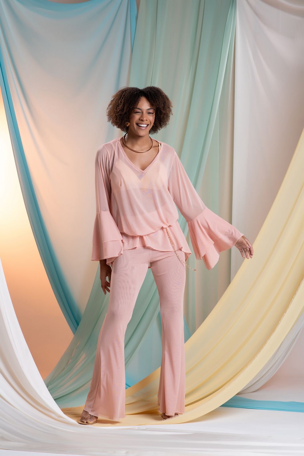 A Blusa Bata Valentina traz toda a jovialidade do tule misturado a elegância da modelagem mais solta. Possui babados nas mangas, o que deixa a roupa com movimento e um toque fashionista.