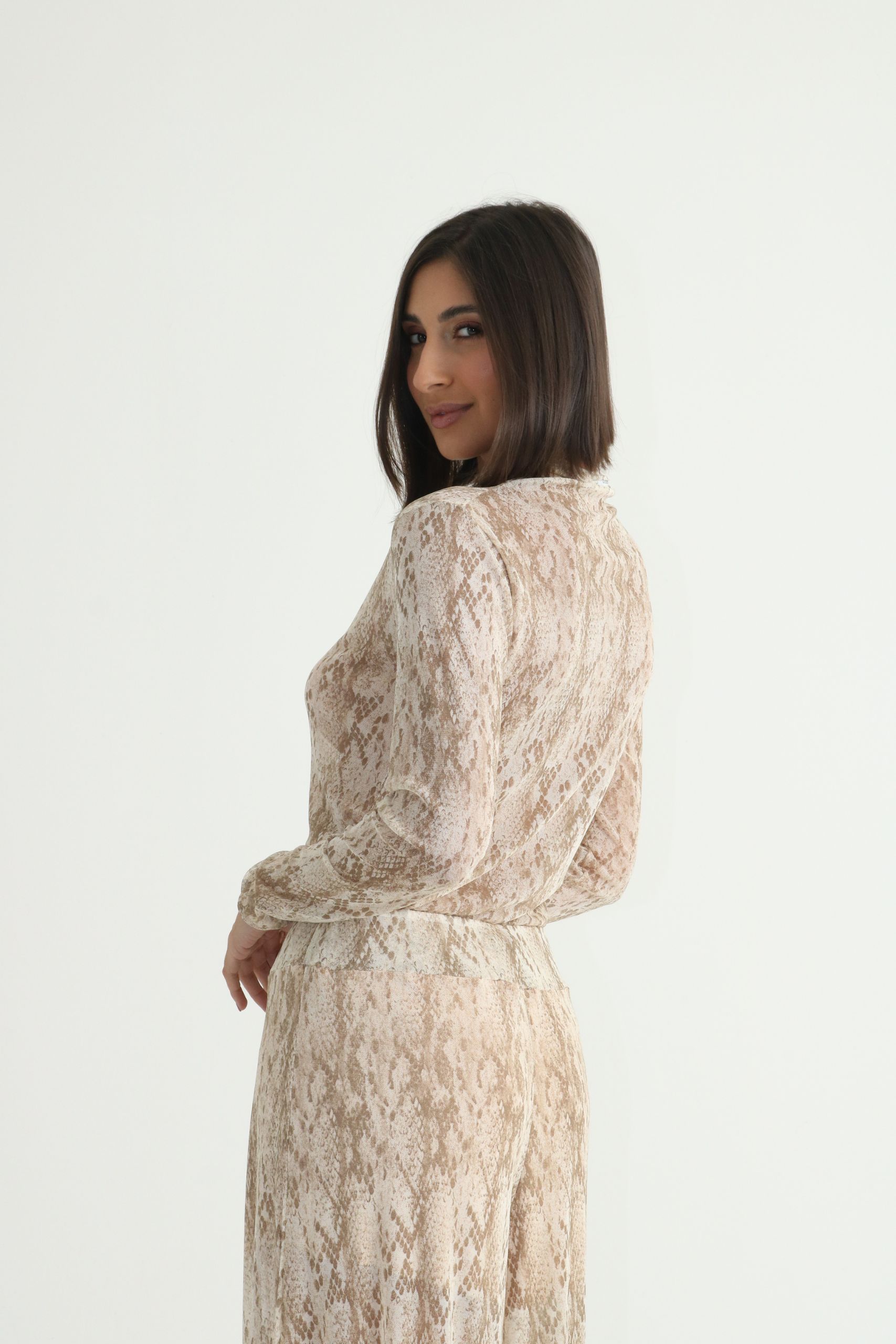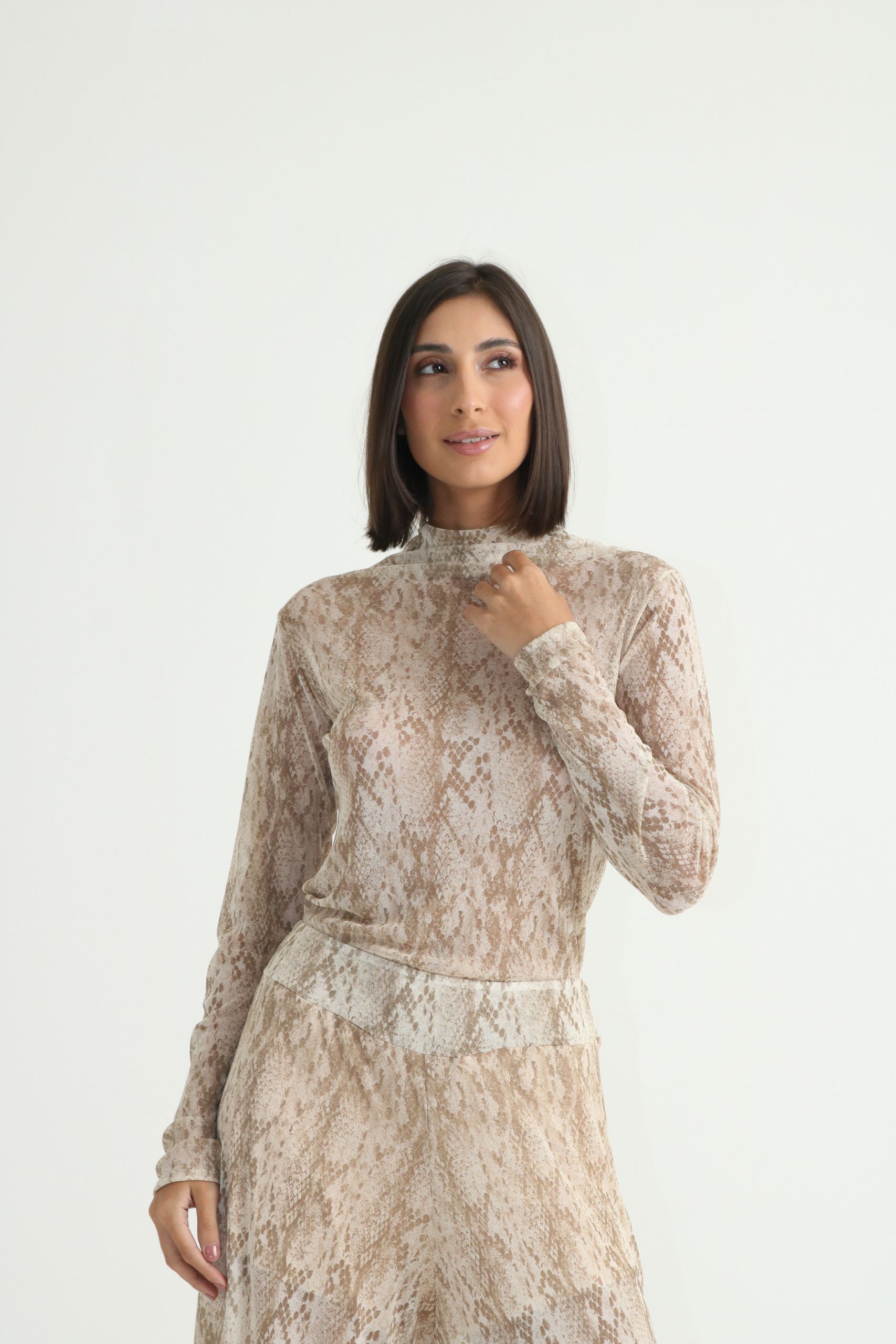A Blusa Cacharrel confeccionada em tule, com toque leve e transparência sutil que traz sofisticação à peça. Possui mangas compridas e gola alta, criando uma silhueta elegante e contemporânea. Versátil e moderna, é perfeita para sobreposições ou para composições mais ousadas, transitando com facilidade entre produções delicadas e fashionistas.