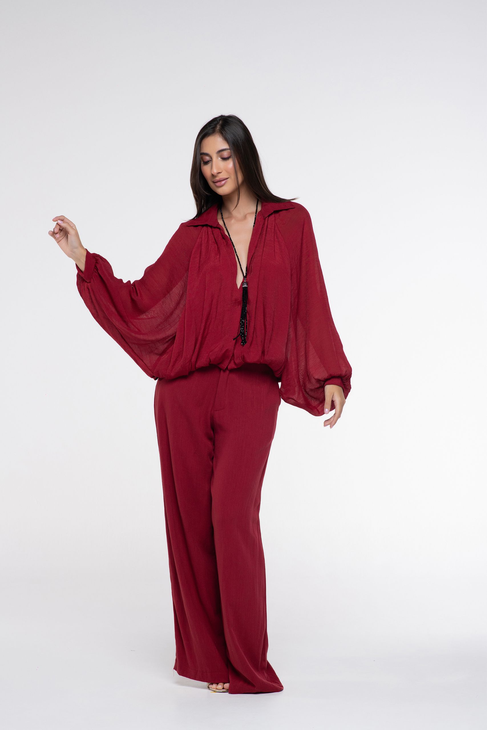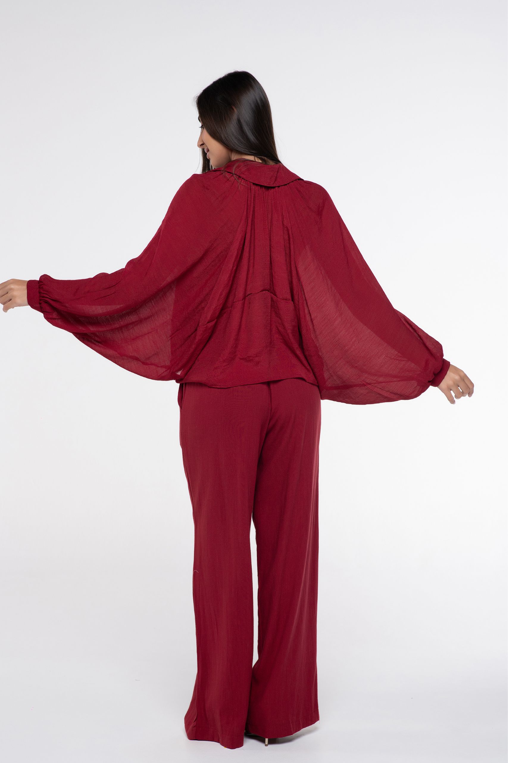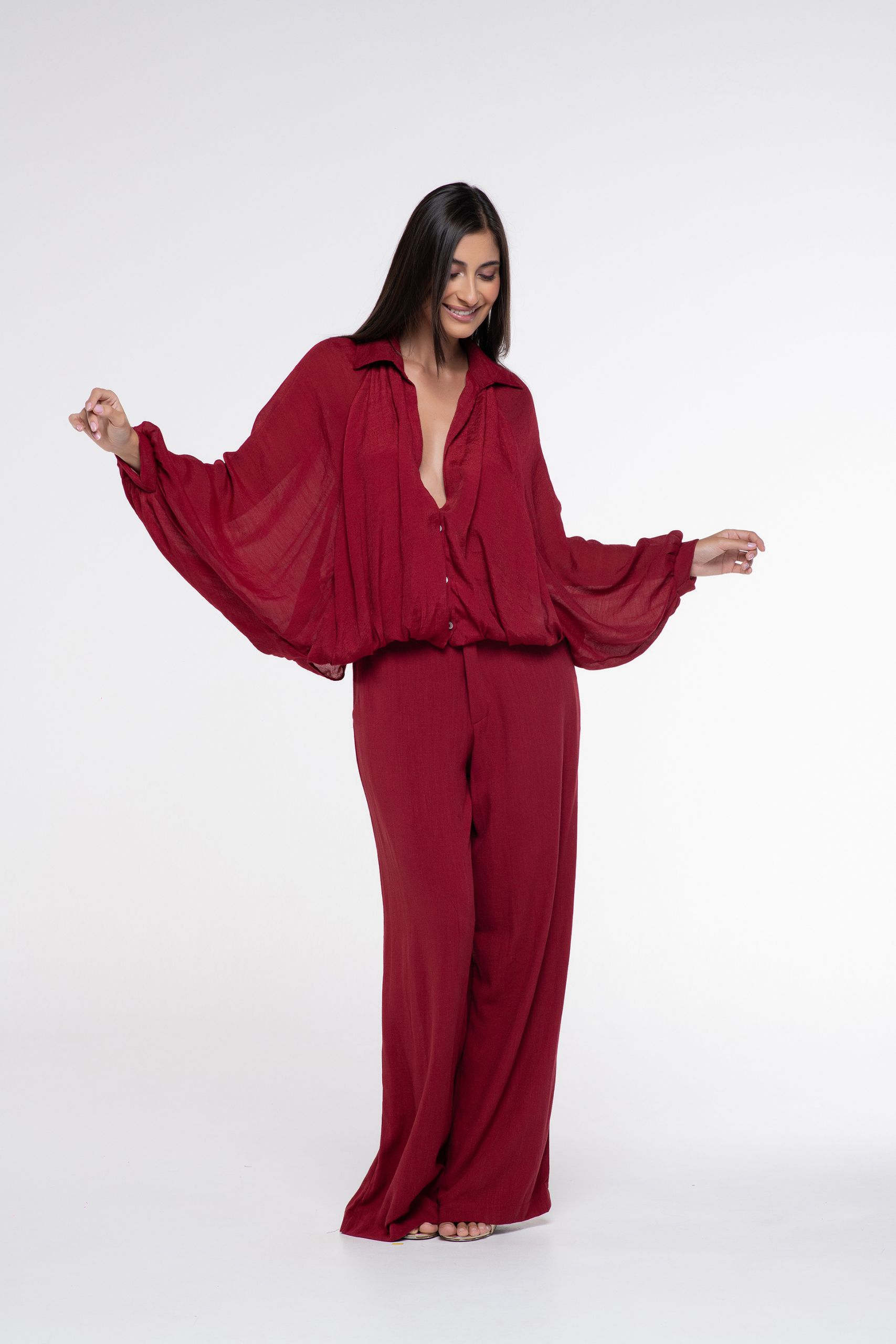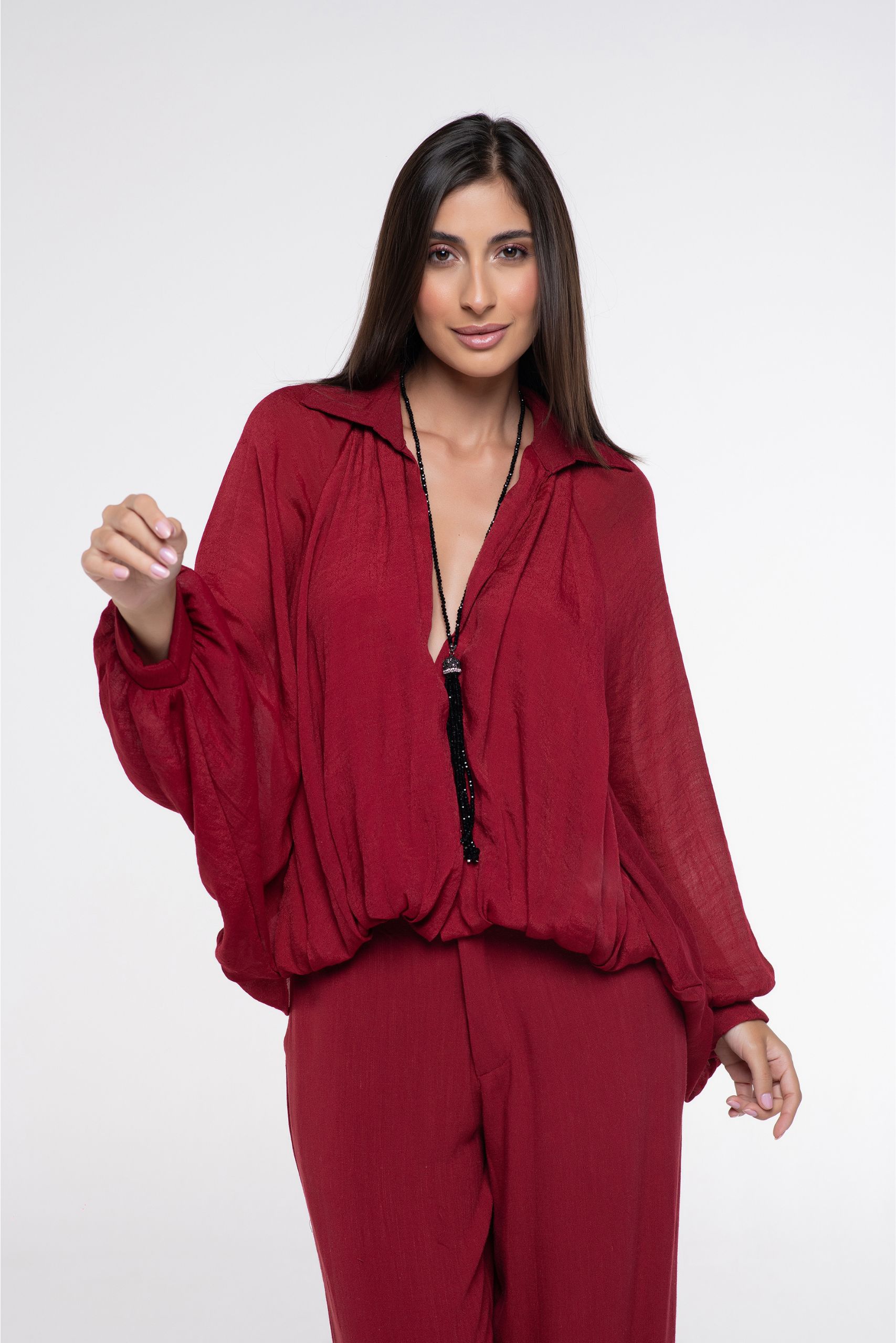 A Blusa Zim é marcante e cheia de personalidade, ideal para composições modernas com um toque fashionista. Confeccionada em viscose com poliéster, a peça possui estrutura leve com caimento levemente encorpado, criando o efeito abaulado que traz volume na medida certa. O comprimento curto valoriza a silhueta e dialoga perfeitamente com peças de cintura alta, enquanto a manga morcego adiciona amplitude e um visual contemporâneo.