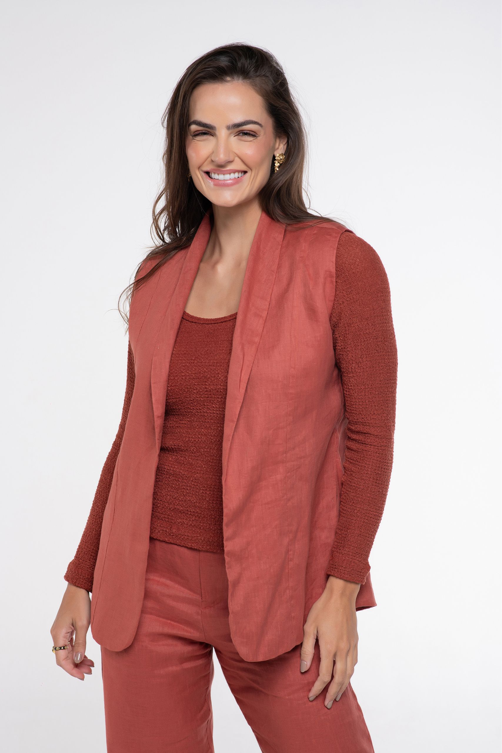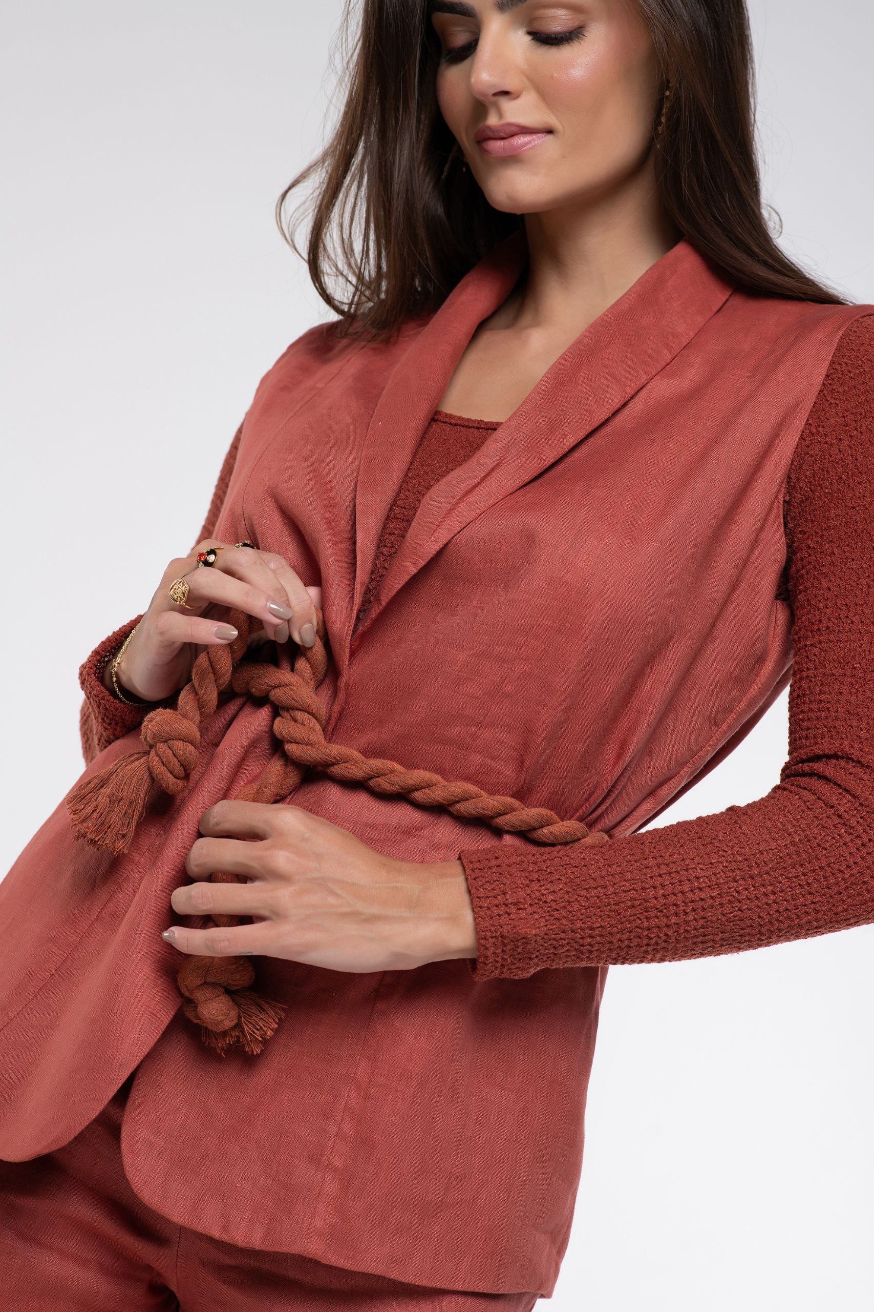 O Colete Puro Linho é confortável e, perfeito para quem busca elegância com leveza. Confeccionado em linho puro, a modelagem possui caimento reto, valorizando o movimento natural do tecido. O destaque fica por conta da opção de ajustar o colete na cintura com um lenço ou cinto, o que traz um toque contemporâneo ao modelo.