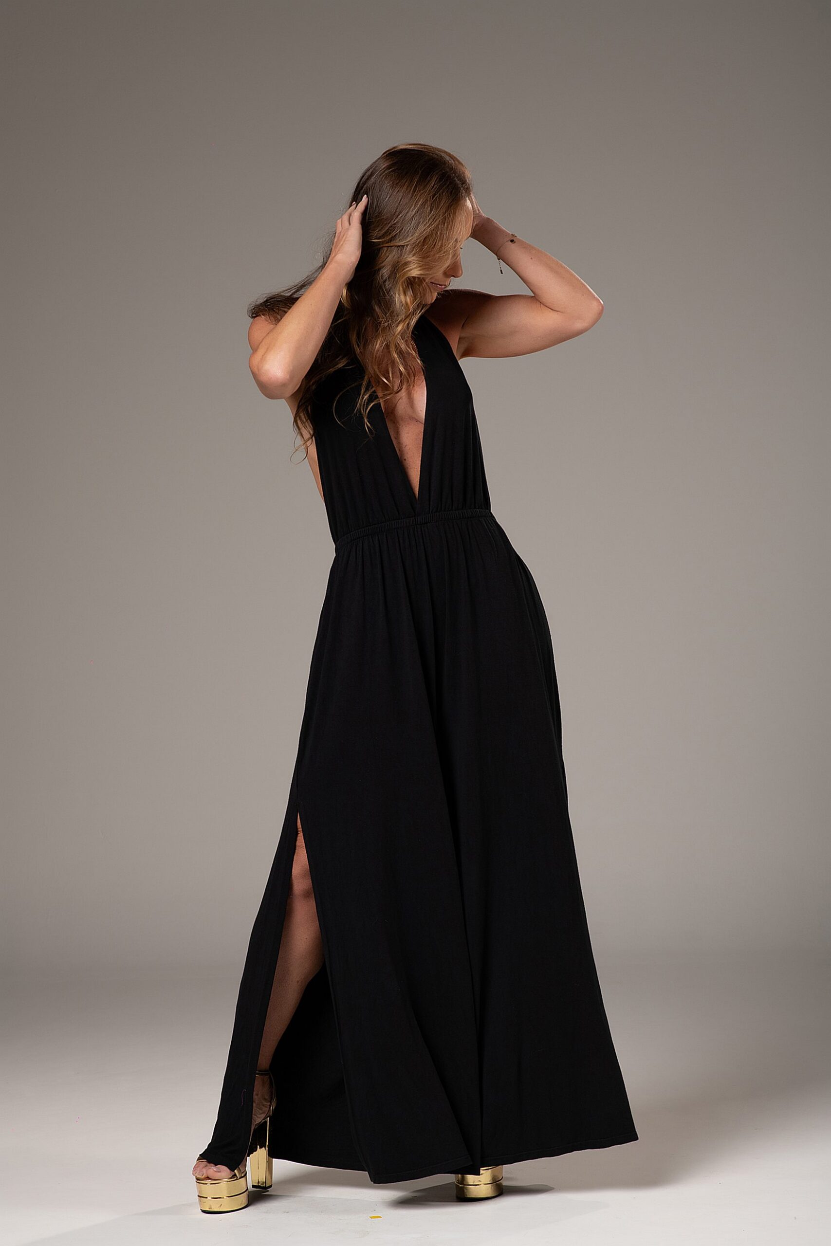 Esse macacão é aquele tipo de peça que transforma qualquer produção. Feito em malha leve e confortável, vem no modelo frente única com um decote lindo que valoriza o colo. As laterais das pernas são abertas, criando um movimento moderno e superestiloso enquanto você anda. Um look marcante, fluido e cheio de atitude, perfeito para momentos em que você quer impressionar sem perder o conforto. Daqueles que você veste e já se sente poderosa.