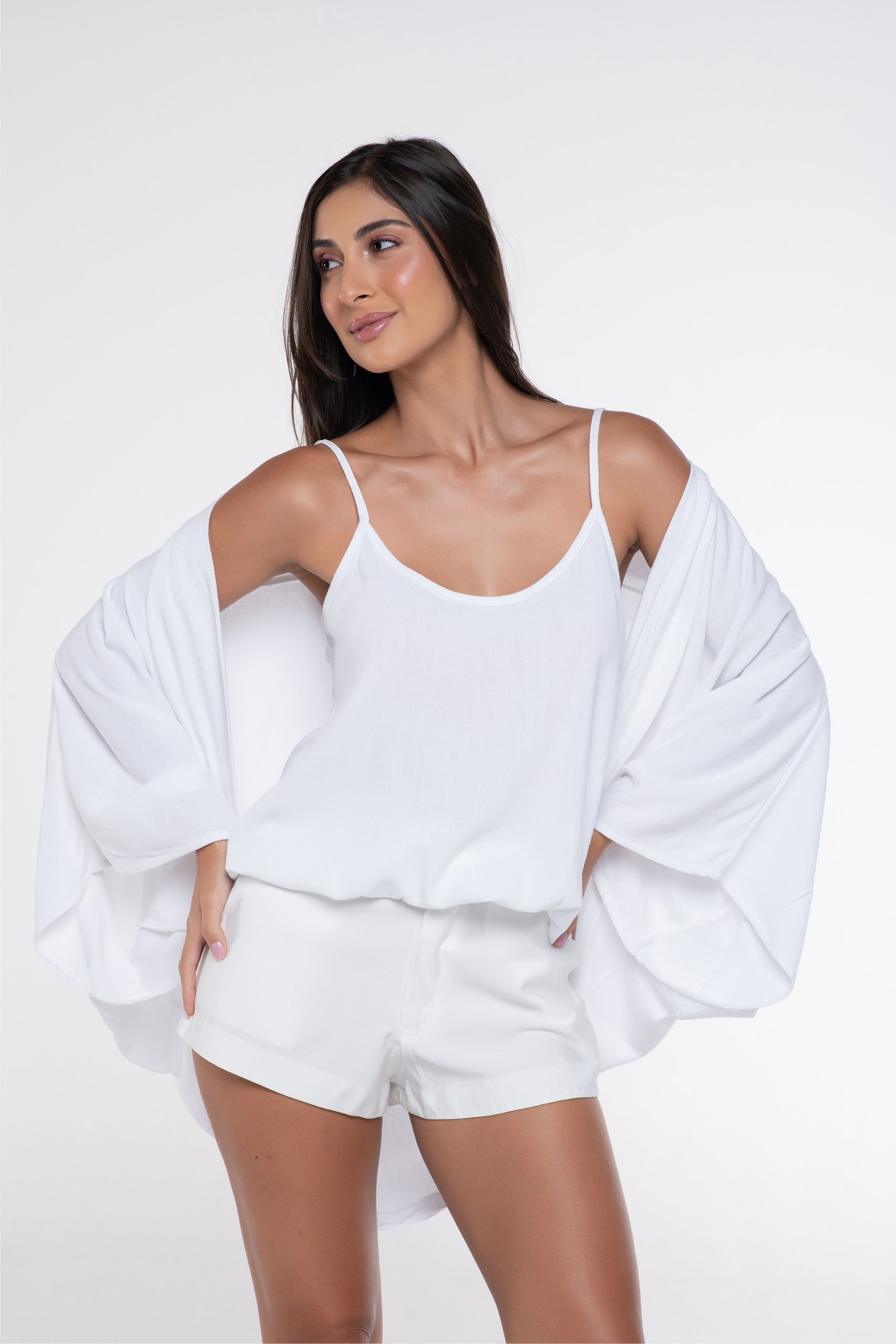 Cuidados: recomendamos lavar à mão; nunca use água quente; prefira sabão neutro; pendure em um cabide e deixe secar à sombra; passar com ferro em temperatura baixa.