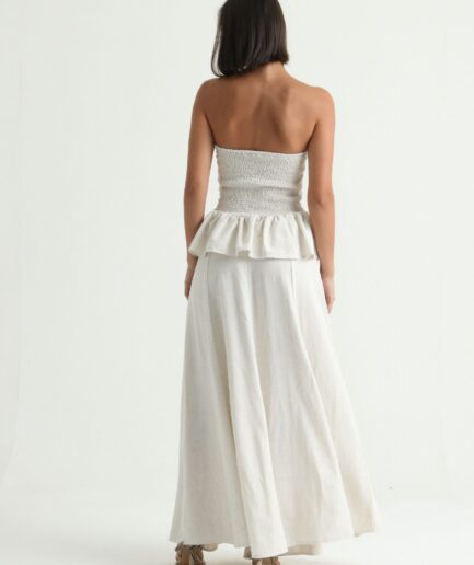 A Saia Lastex Taina possui modelagem longa e ampla, o cós no lastex deixa a peça confortável e perfeita para ser usada no dia a dia. Ela possui fenda lateral, deixando o look mais moderno e elegante.