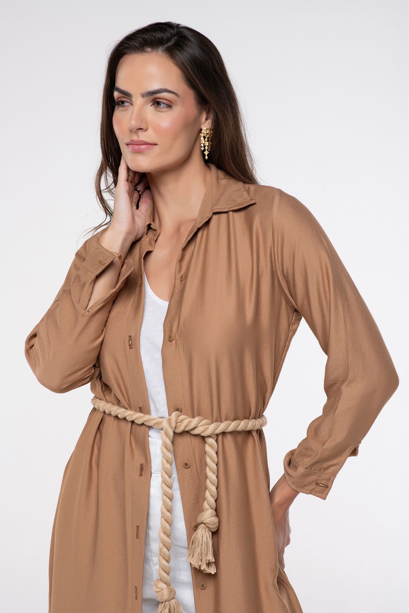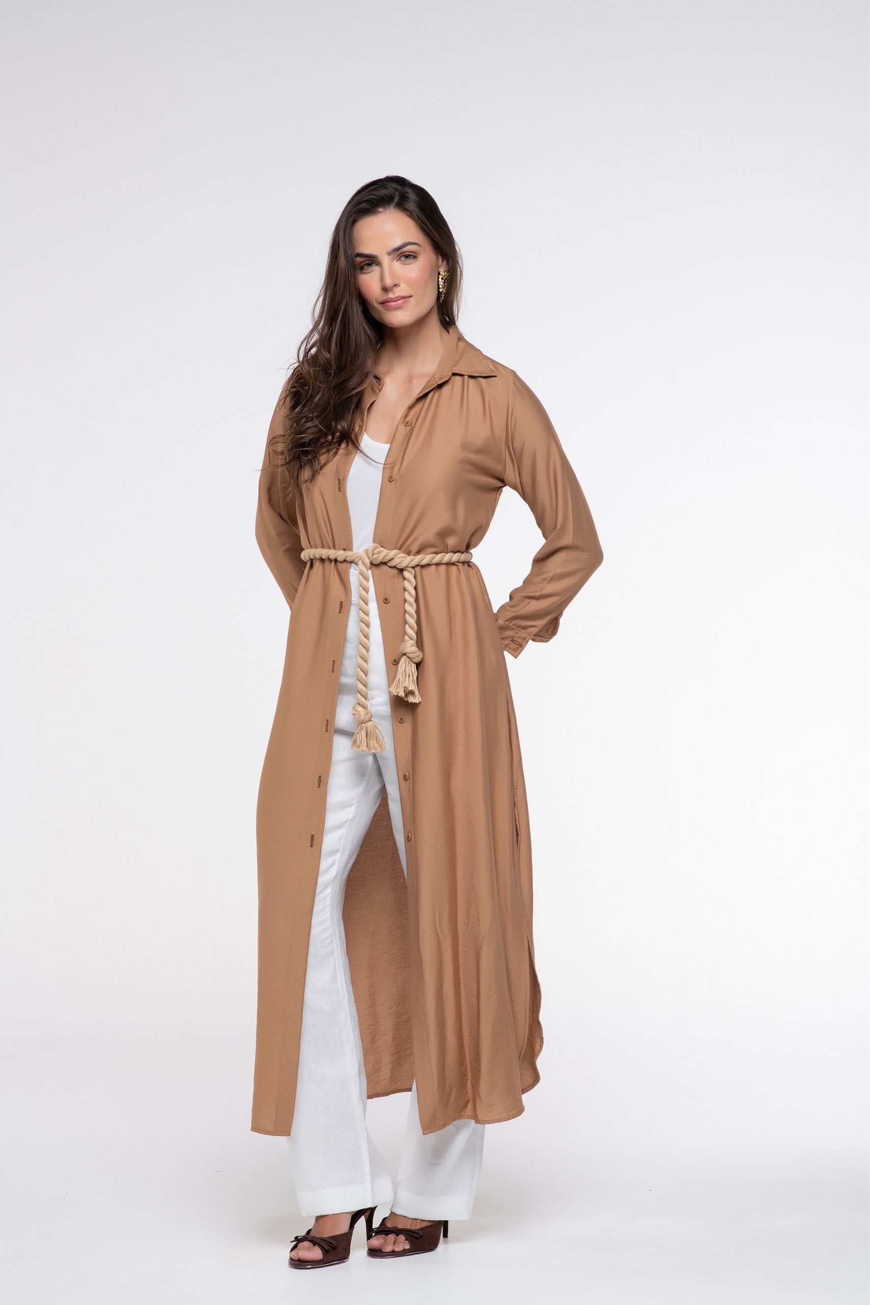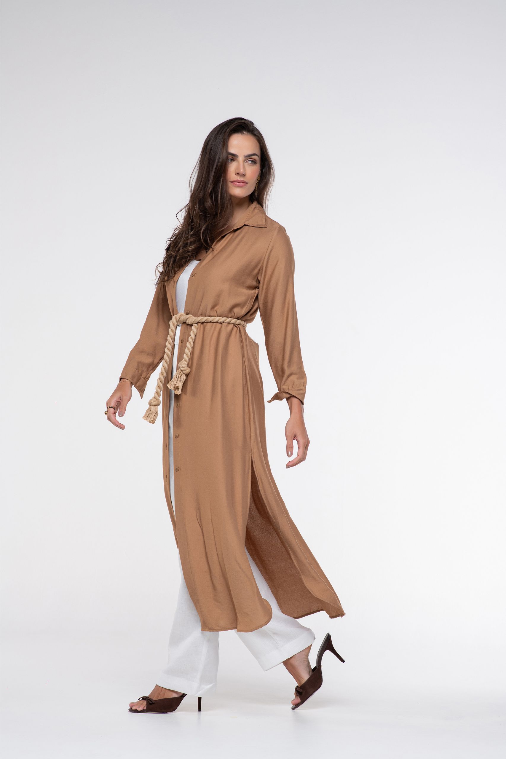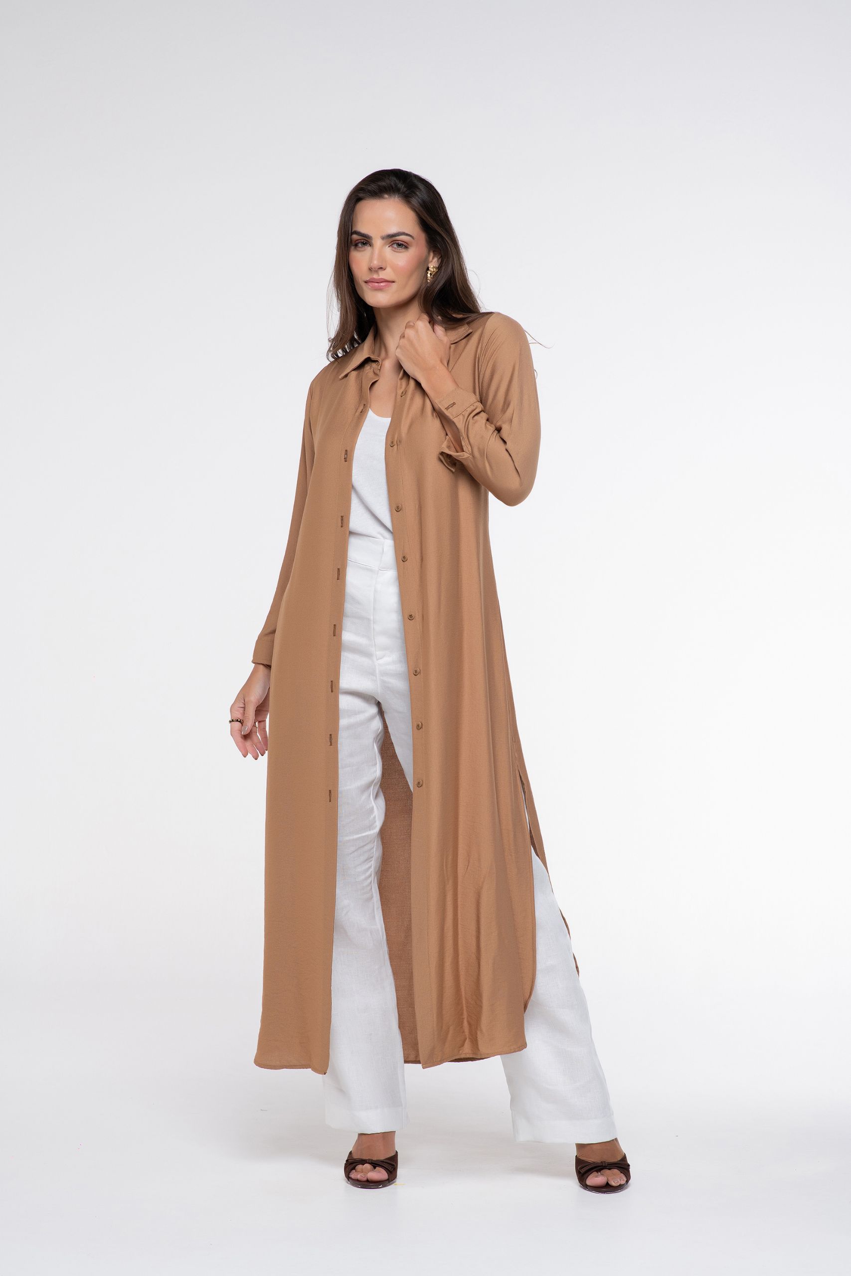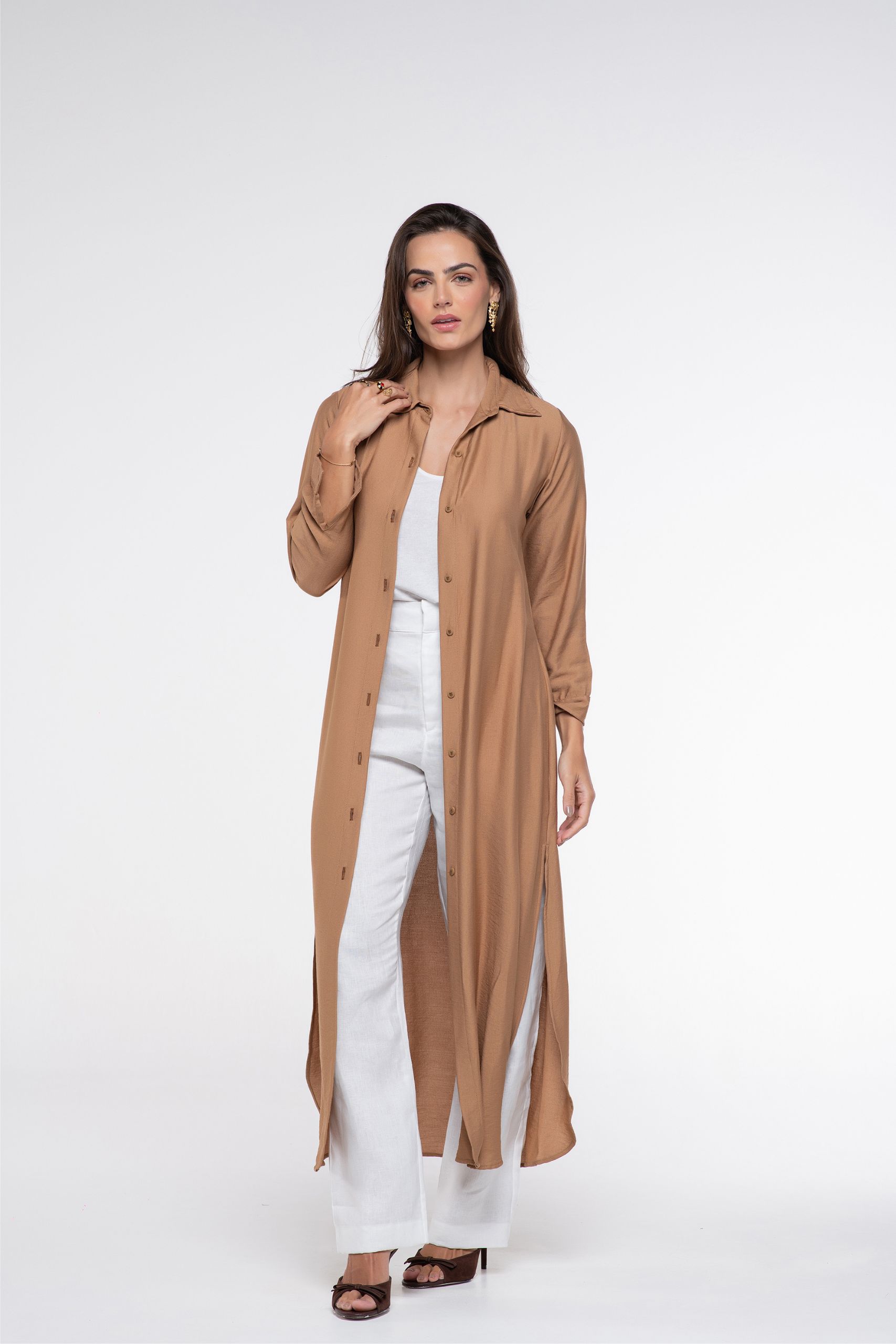 O Vestido Chemise Slim é prático e elegante, ideal para quem busca um visual sofisticado sem esforço. Confeccionado em tecido de poliéster com viscose, a peça possui caimento leve e toque suave, com excelente acabamento. O fechamento frontal por botões traz funcionalidade ao design, enquanto as fendas laterais adicionam movimento e leveza à silhueta, além de garantirem mais conforto ao caminhar. O comprimento alongado reforça a proposta moderna e versátil da peça.
