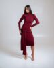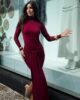 Para mulheres que amam peças sofisticadas com design marcante, este vestido midi é um verdadeiro destaque. Com modelagem justa ao corpo, ele valoriza as curvas com elegância e traz um toque fashion com sua gola alta e mangas longas, elementos que alongam a silhueta e garantem presença.