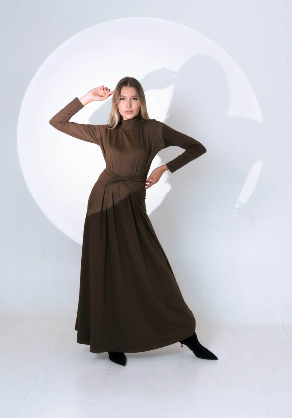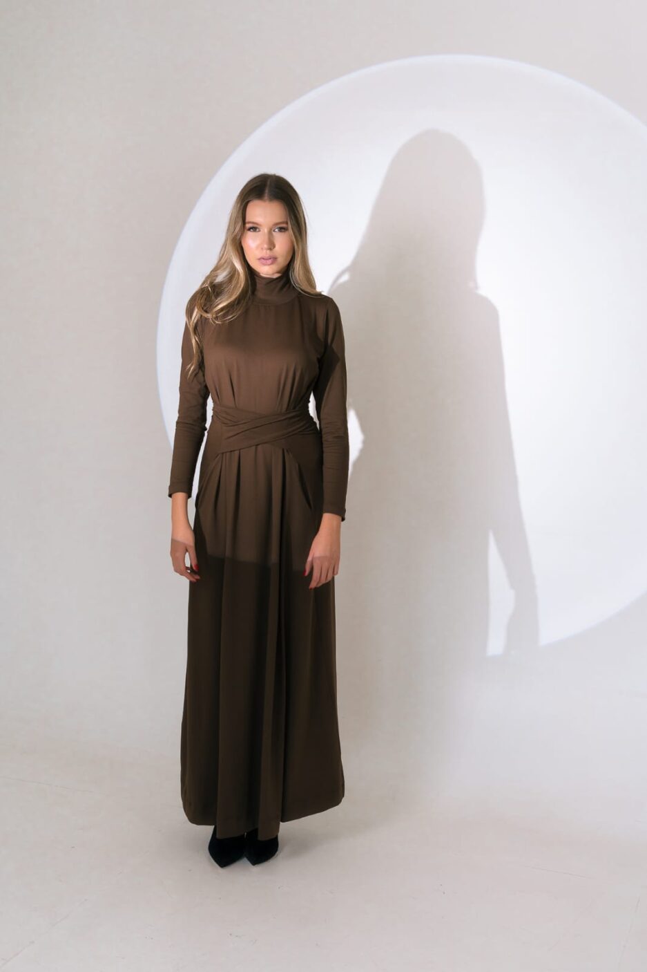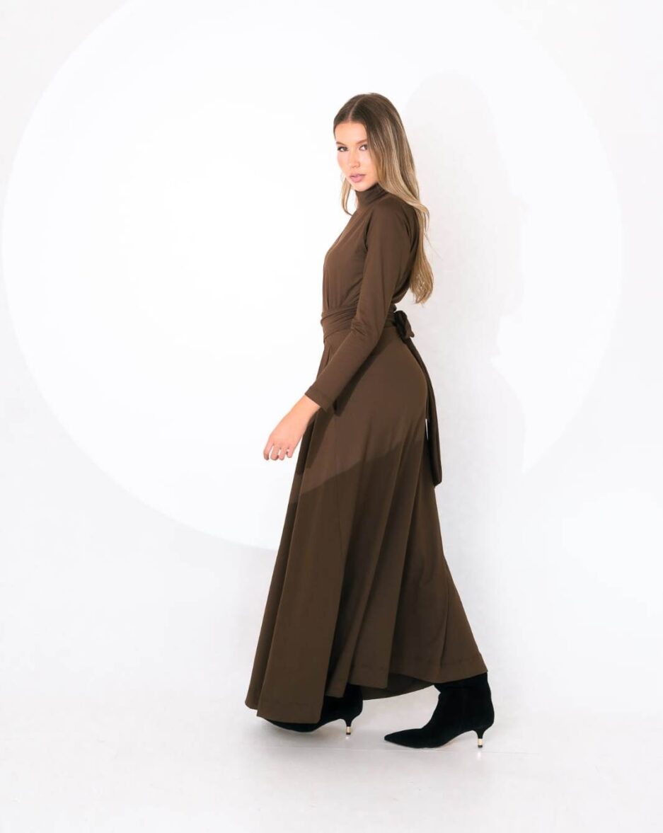 Elegante, moderno e extremamente confortável, esse vestido longo é a escolha certa para quem valoriza praticidade sem abrir mão do estilo. Com gola alta e mangas longas, ele traz um visual sofisticado e atemporal. As faixas laterais permitem ajustar a cintura com charme, valorizando a silhueta com leveza e naturalidade.
